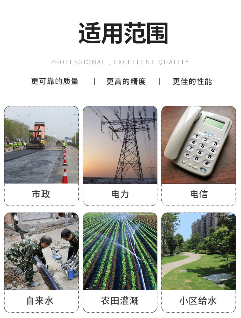HDPE雙壁波紋管的認(rèn)識:HDPE雙壁波紋管又稱大口徑排污管,是以聚乙烯為主要原料,分別由內(nèi)外擠出機(jī)共同擠出,一次成型,內(nèi)壁平整光滑,外壁呈階梯波紋狀,內(nèi)外壁之間有夾壁空芯層的塑料管材。產(chǎn)品具有重量輕,環(huán)剛度高,施工運(yùn)輸安裝方便,安裝成本低,較高的抗紫外線穩(wěn)定性,彎曲柔性好,適當(dāng)?shù)膿锨龋欢ㄩL度的HDPE雙壁波紋管管軸可略微撓曲,使用中地基不均勻沉降,管材會自然彎曲,不會造成滲漏,管材內(nèi)壁光滑,因此同規(guī)格管材相比較流量大,同時(shí)管材還具備不易堵塞,易于維護(hù),耐壓、耐低溫、抗沖擊強(qiáng)度高,抗酸堿、耐腐蝕;使用壽命長,可敷設(shè)在地質(zhì)條件差的路段,而且密封性好,施工快捷等優(yōu)點(diǎn)。產(chǎn)品規(guī)格:(mm)110、160、200、225、300、400、500、600、700、800、1000。等級分為:環(huán)剛度8級(簡稱s2級)和環(huán)剛度4級(簡稱s1級).使用范圍:1.排污排水管:如市政工程排水、工廠、企業(yè)、化工、醫(yī)藥行業(yè)排水管道。2.各種建筑工程、配套排水工程:如球場、鐵路、高速等。3.低壓輸水工程:如農(nóng)田、果園、林業(yè)的灌溉排水。4.通風(fēng)、通信工程:如礦井的通風(fēng)、礦井壁滲管、鐵路、公路電纜光纜、電信、護(hù)套管。施工與連接方法:1.管道應(yīng)敷設(shè)在原狀土地基或經(jīng)開槽后處理回填密實(shí)的地層上,管道在車行道下管頂覆土厚度不小于700mm。2.雙壁波紋管管道工程可同槽施工,可按一般管道同槽敷設(shè)設(shè)計(jì)、施的有關(guān)規(guī)定進(jìn)行。3.當(dāng)管道穿越鐵路、高等級道路路堤及有障礙的構(gòu)筑物時(shí),應(yīng)設(shè)置鋼筋混凝土、鋼、鑄鐵等材料制作的保護(hù)套管,套管內(nèi)徑應(yīng)大于波紋管外徑300mm以上,管道與套管之間的端部處空間用填料填塞。4.溝槽槽底凈寬度,宜按管外徑加600mm確定,以便于人工在槽底作業(yè)為宜。5.雨季施工,應(yīng)盡可能縮短開槽長度,做到成槽快,回填快,并做好防泡槽的措施。一旦發(fā)生泡槽,應(yīng)將水排除,把受泡的軟化土層清除,換填砂石料或中粗砂,做好基礎(chǔ)處理。6.管道基礎(chǔ)設(shè)計(jì),采用墊層基礎(chǔ)。對一般的土質(zhì)地段,基底只需鋪一層砂墊層,其厚度為100mm;對軟土地基,槽底有處在地下水位時(shí);宜鋪墊一層砂礫或碎石,其厚度不小于150mm,碎石粒徑5mm-40mm。上面再鋪砂墊層(中、粗紗),厚度不小于50mm,墊層總厚度不小于200mm。7.管道安裝一般均可采用人工安裝。安裝時(shí),由人工抬管道兩端傳給槽底施工人員。明開槽,槽深大于3米或管徑大于400mm的管道,可用非金屬繩索溜管,使管道平穩(wěn)的放在溝槽管位上。嚴(yán)禁用金屬繩索勾住兩端管口或?qū)⒐艿雷圆圻叿瓭L拋入槽中。混合槽或支撐槽,因支撐的影響,宜采用從槽的一端集中下管,在槽底將管道運(yùn)至安裝位置進(jìn)行安裝。8.承插口管安裝應(yīng)將管口順?biāo)鞣较颍锌谀嫠鞣较颍上掠蜗蛏嫌我来伟惭b。9.管道長短的調(diào)整,可用手鋸切割,但斷面應(yīng)垂直平整,不應(yīng)有損壞。10.管道連接采用橡膠圈密封接口時(shí)應(yīng)遵守以下規(guī)定(1)接口前,應(yīng)先檢驗(yàn)?zāi)z圈是否配套完好,確認(rèn)膠圈安放位置及插口應(yīng)插入承口的深度。2)接口作業(yè)時(shí),應(yīng)先將承口的內(nèi)工作面用棉紗清理干凈,不得有泥土等雜物,并涂抹潤滑劑,然后立即將插口端的中心對準(zhǔn)承口中心軸線就位。(3)插口就位后插入承口。可在管端部設(shè)置木擋板,用撬棍使被安裝的管道沿著對準(zhǔn)的軸線徐徐插入承口內(nèi),逐節(jié)依次安裝。de>400mm的管道可用柔性纜繩系住管道用手動葫蘆等提力工具,嚴(yán)禁用施工機(jī)械強(qiáng)行推頂管插入承口。